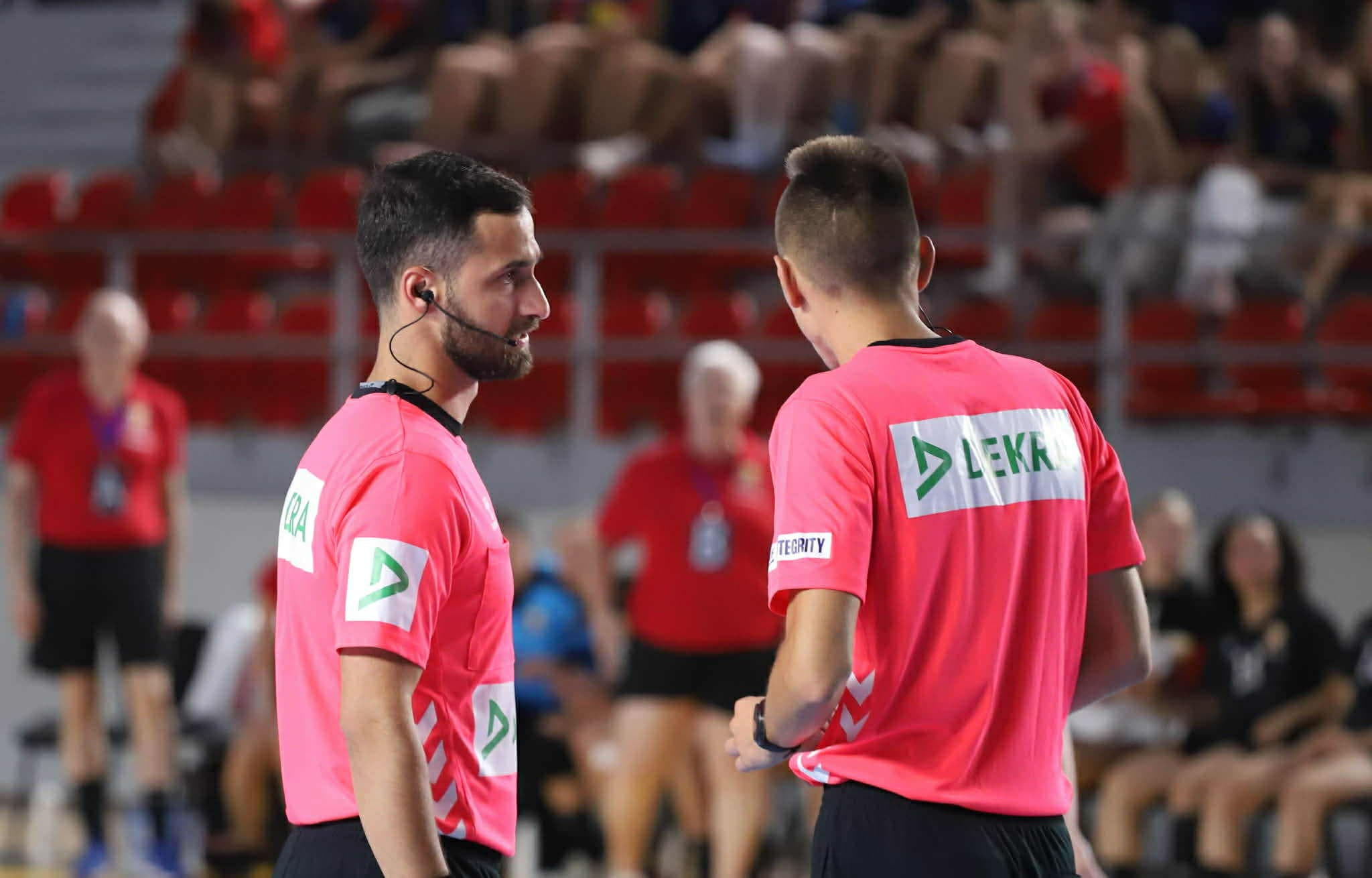Foto: Artur Oganezov ja Kaarel Raidmets EHF kohtunikena mängul (erakogu)